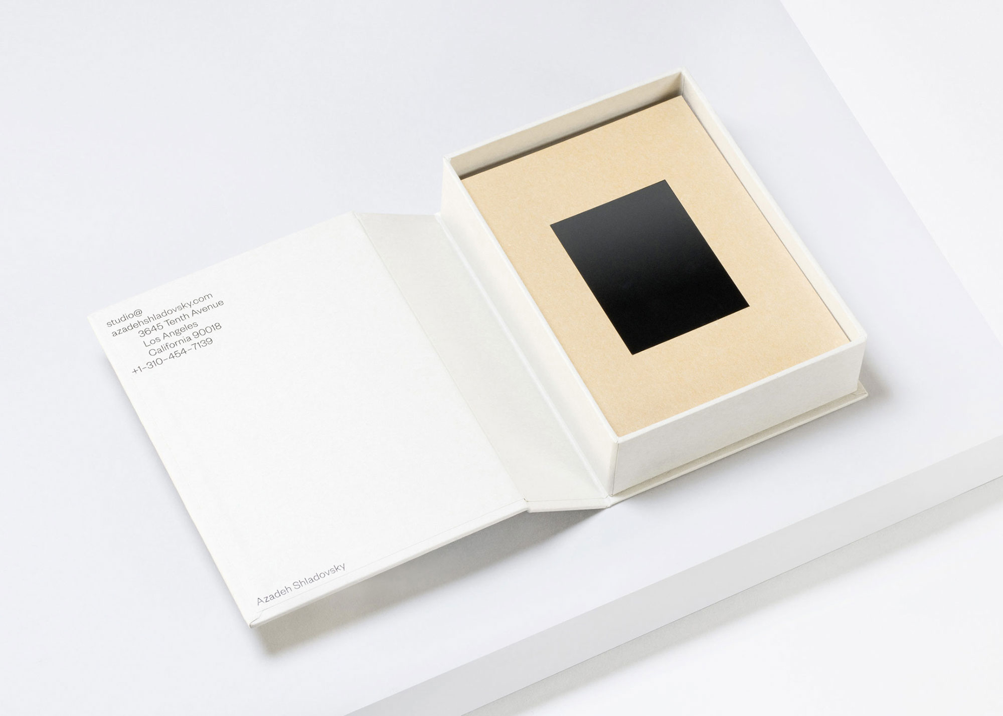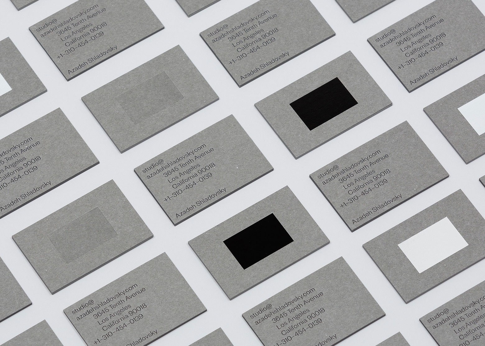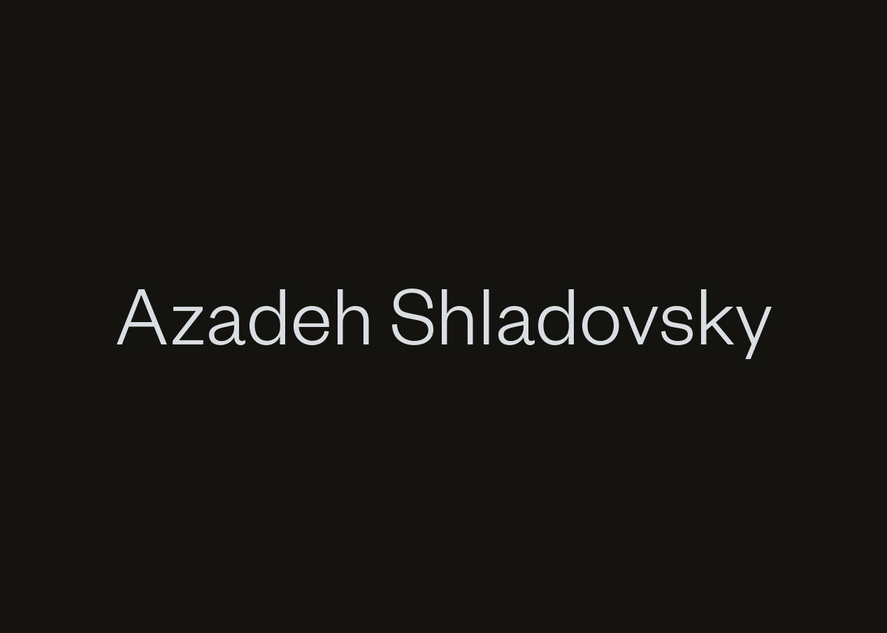 Azadeh Shladovsky is a L.A. based conceptual artist and Interior Designer. Her work is often a play between raw materials and polished metals. The identity designed seeks to parallel her use of craft and control within her work.