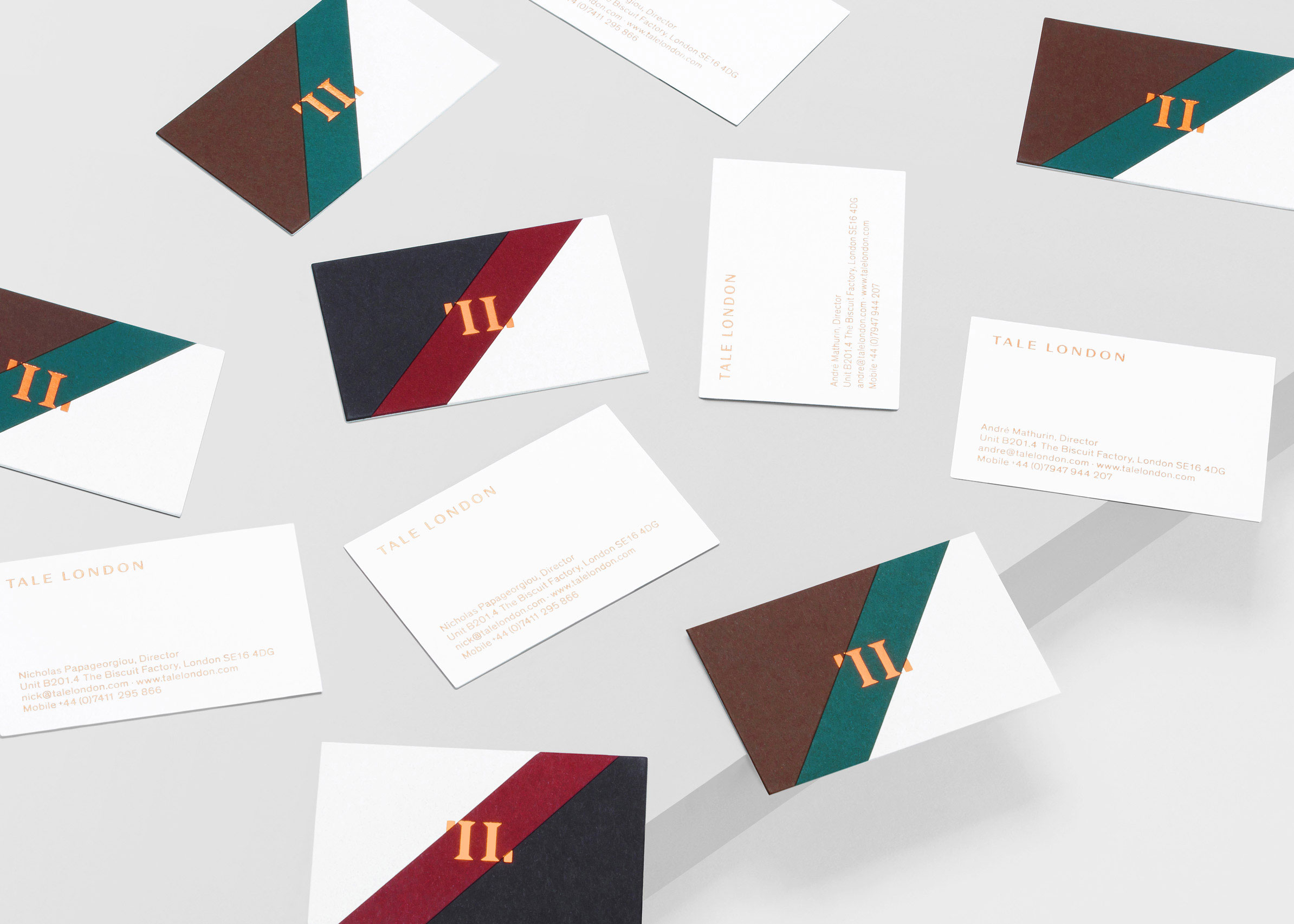 Tale London are an architectural visualisations company based in London. Tactile print processes were key to the identity – a method known as paper marquetry was used – to symbolise the various textures, rooms and spaces they deal with.